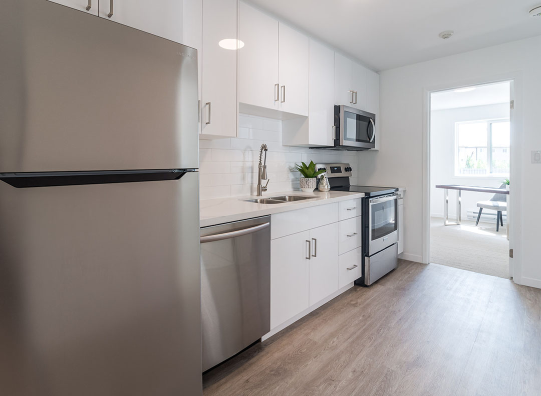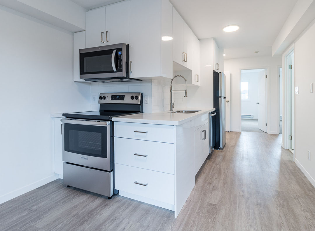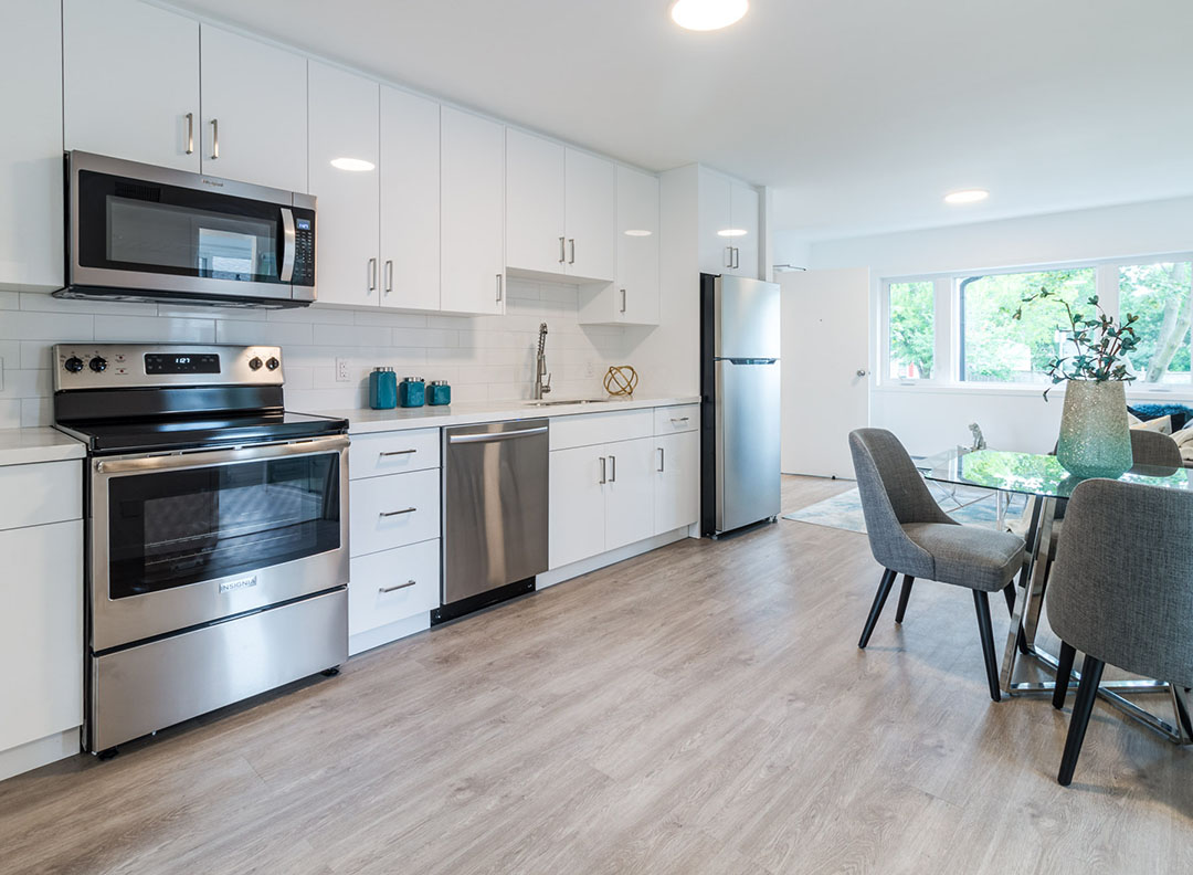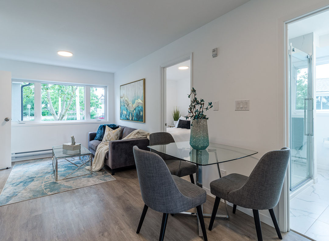 A completely revitalized multi-unit apartment, featuring stylish modern finishes. Clean and spacious units, updated with sparkling tile bathrooms, all-new kitchens and floors throughout. Zaia was able to carry the same look and feel, across multiple units, which varied in size and shape.